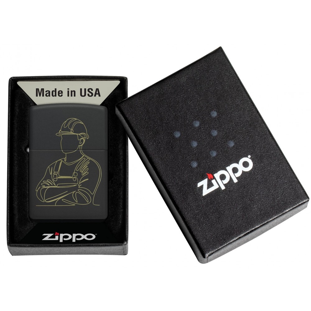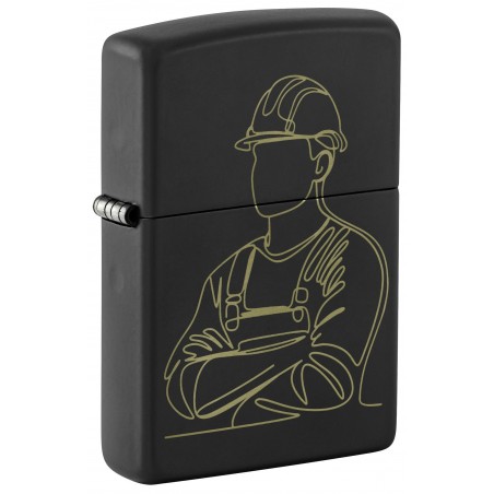 Šis klasikinis juodos matinės spalvos žiebtuvėlis puikiai tinka bet kuriam meistrui, pagerbdamas jų pastangas minimalistiniu lazeriu graviruotu dizainu, vaizduojančiu darbuotoją su šalmu.