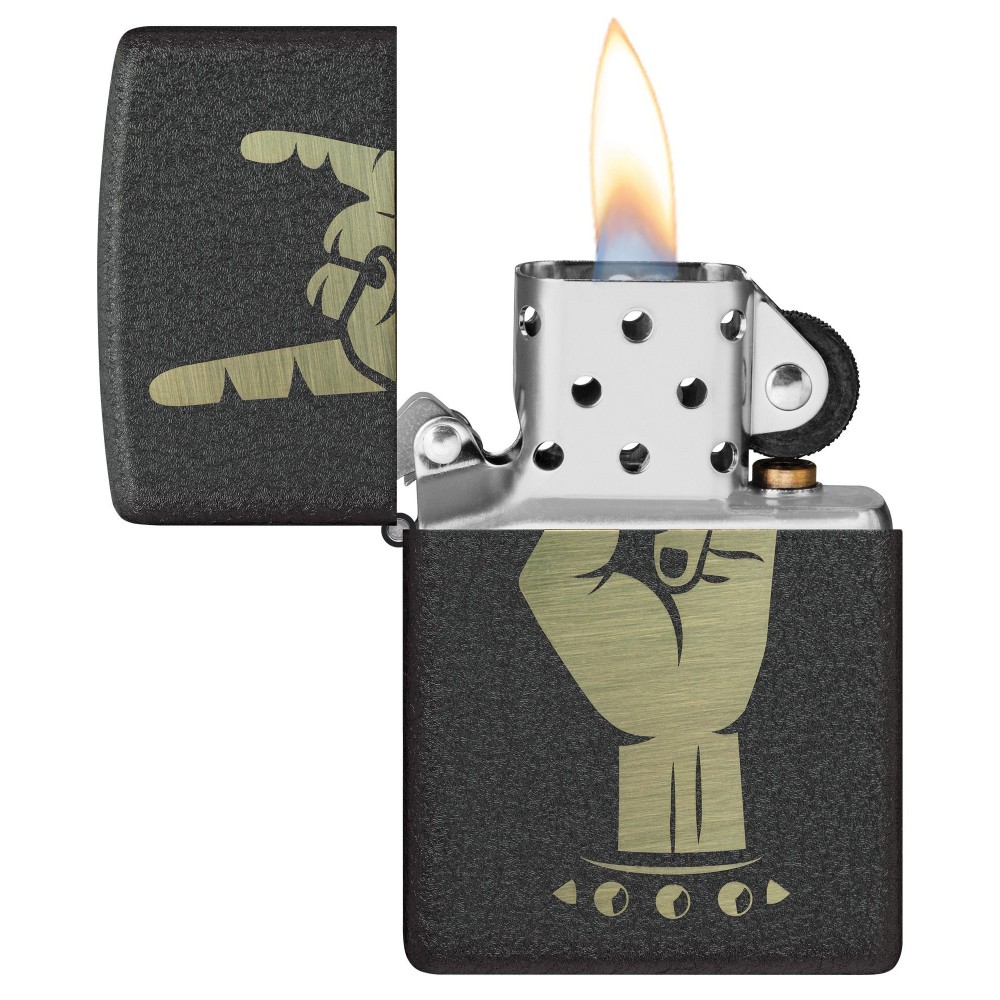 Pasiimkite koncertą su savimi su šiuo klasikiniu „Black Crackle®“ žiebtuvėliu. Kartu su dygsniuota apyranke, legendinis „Rock On“ rankos gestas pavaizduotas žvilgančiais žalvario tonais lazerinio graviravimo dizaine.