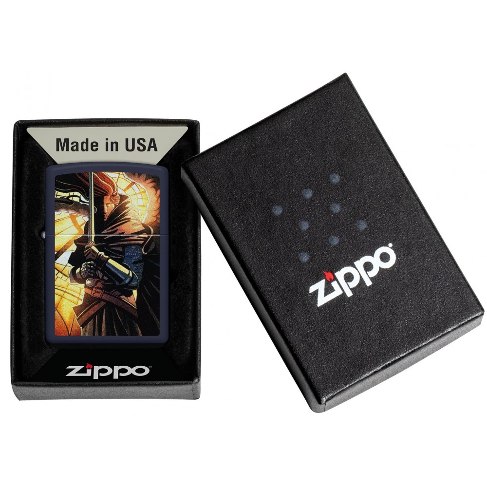 Šiame klasikiniame „Navy Matte“ žiebtuvėlyje modernumas dera su viduramžiais. Abstraktiame „Color Image“ dizaine, apšviestame švytinčios šviesos, šarvuotas karys stovi pasiruošęs kovai.