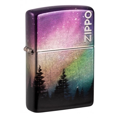 Kvapą gniaužianti aurora apgaubia visus šio žavingo 540° sintezės žiebtuvėlio paviršius, pritvirtintą prie stoiškos medžių linijos. „Zippo“ logotipas puošia dangtį chromo atspalviais, sukuriant subtilų kontrastą.