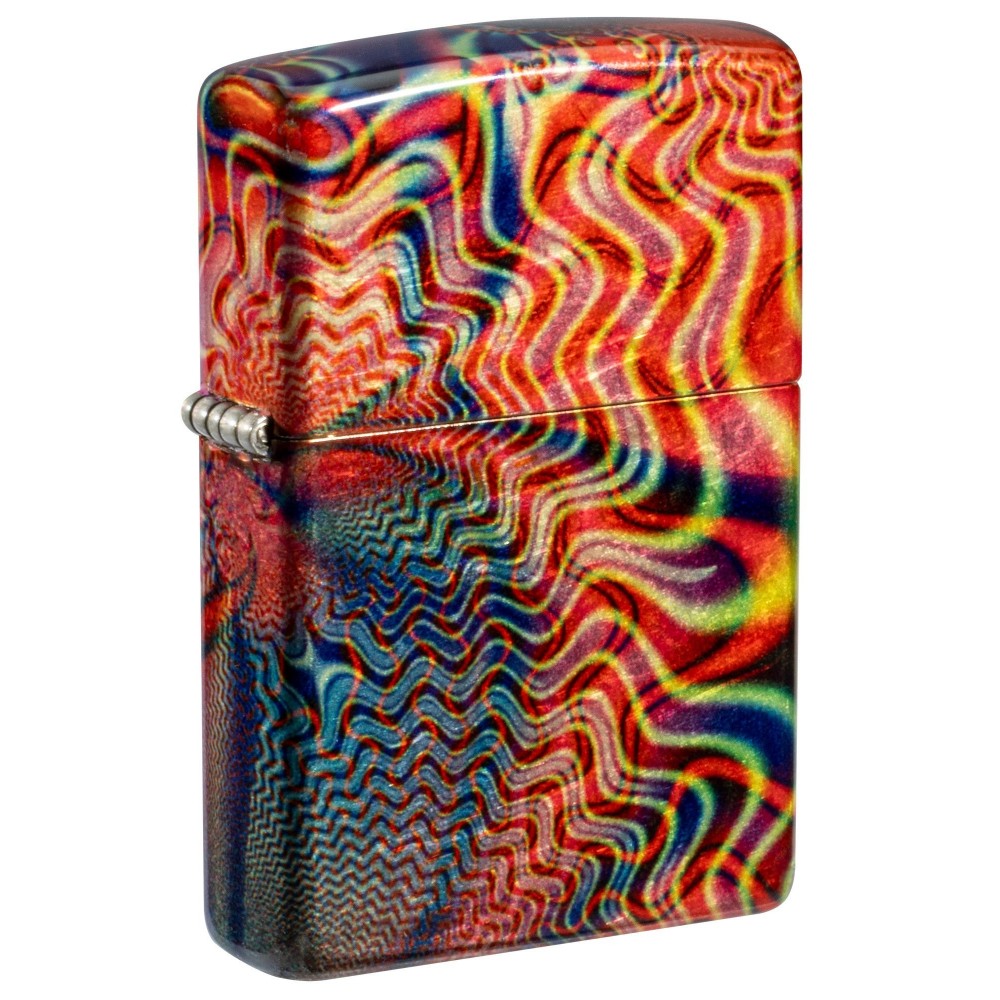 Žvilgančių žalvarinių žiebtuvėlio korpuso atspalvių derinį papildo spalvingų bangų jūra, sklandžiai apgaubianti kiekvieną šio klasikinio, kerinčio 540 Fusion dizaino, apdirbto žalvario imitacijos žiebtuvėlio paviršių.