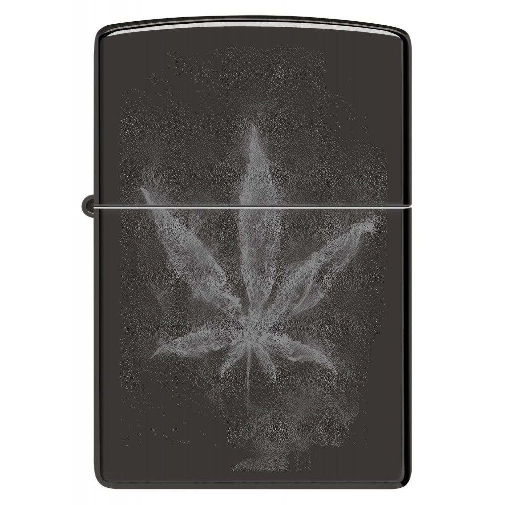 Subtilus kanapių lapas atsiskleidžia ant šio klasikinio „High Polish Black“ žiebtuvėlio paviršiaus, perteikto dūminiu ir švelniu „Photo Image“ dizainu.