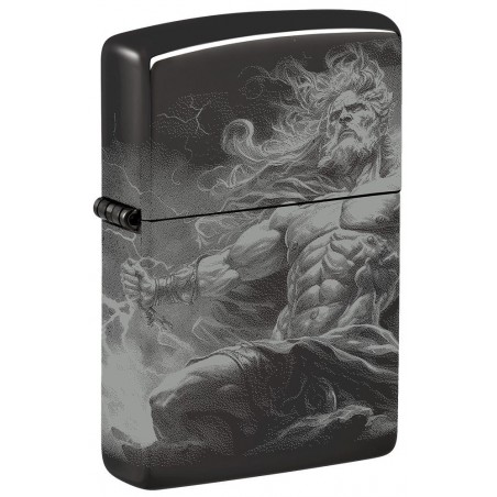 Išlaisvinkite dievo Dzeuso galią naudodami šį klasikinį aukšto poliravimo juodos spalvos žiebtuvėlį. Galingą dievybę supa griausmingi debesys ir žaibai.