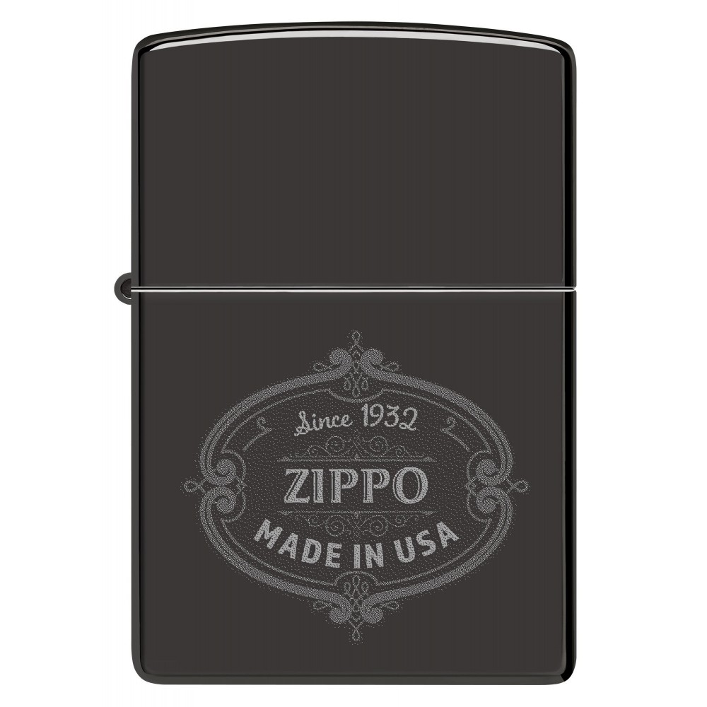 Šis klasikinis, itin blizgaus juodumo žiebtuvėlis pasižymi elegantišku „Zippo“ logotipu, įkūrimo metais ir užrašu „Pagaminta JAV“.